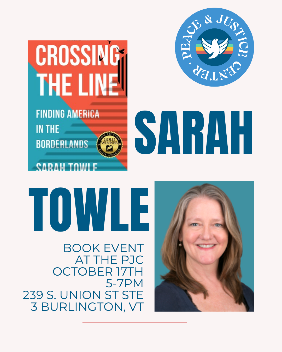 Sarah Towle, author of the acclaimed work Crossing the Line: Finding America in the Borderlands will be visiting the Peace & Justice Center on October 17th from 5-7pm! Come out...