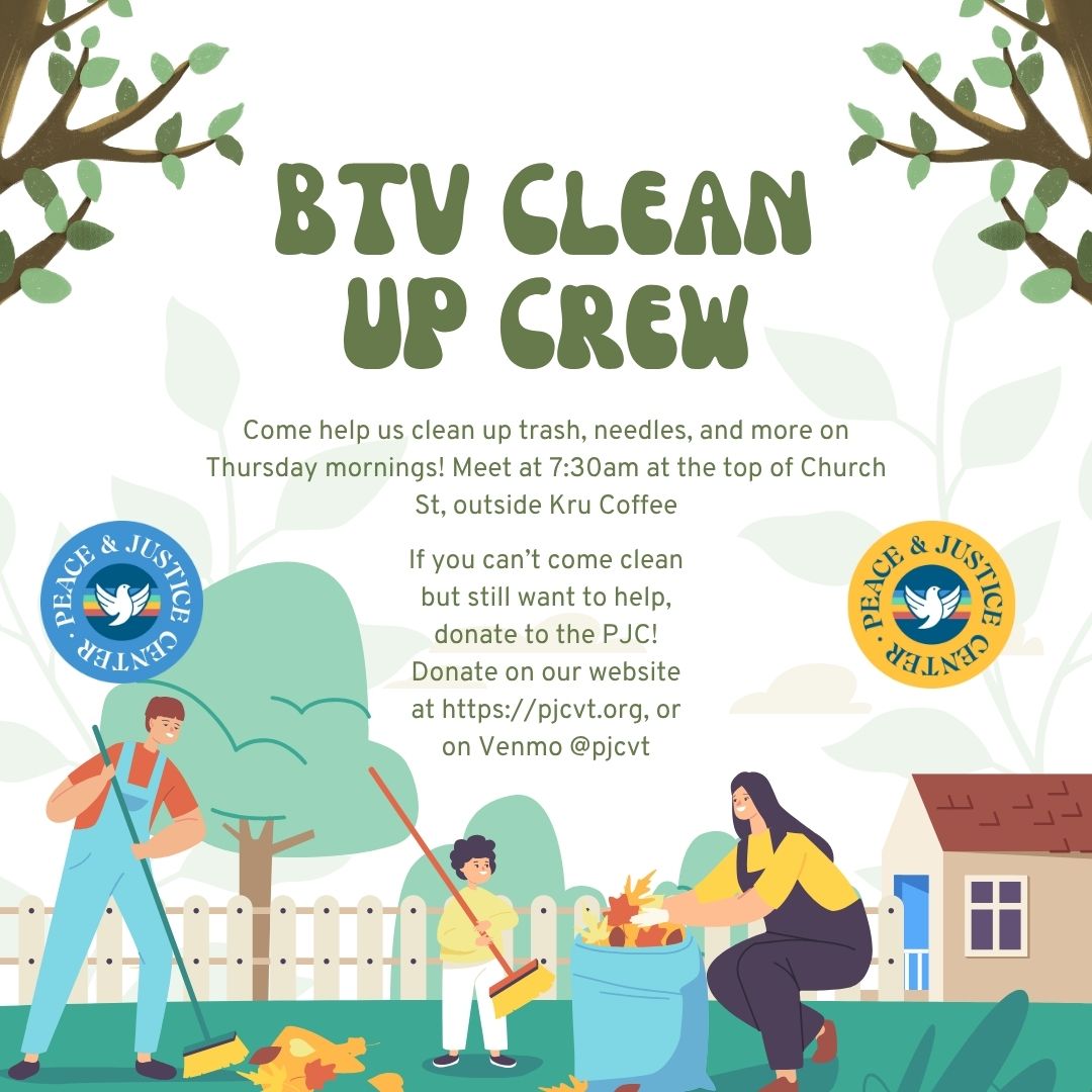 Top of Church St 2 Church St, Burlington, VT, United StatesCome help us clean up Burlington! We'll clean up needles, trash, and ensure our community remains as beautiful and welcoming as we all know it to be. Meet at the top of Church St outside Kru Coffee every Thursday morning at 7:30am! Bring gloves if you can!