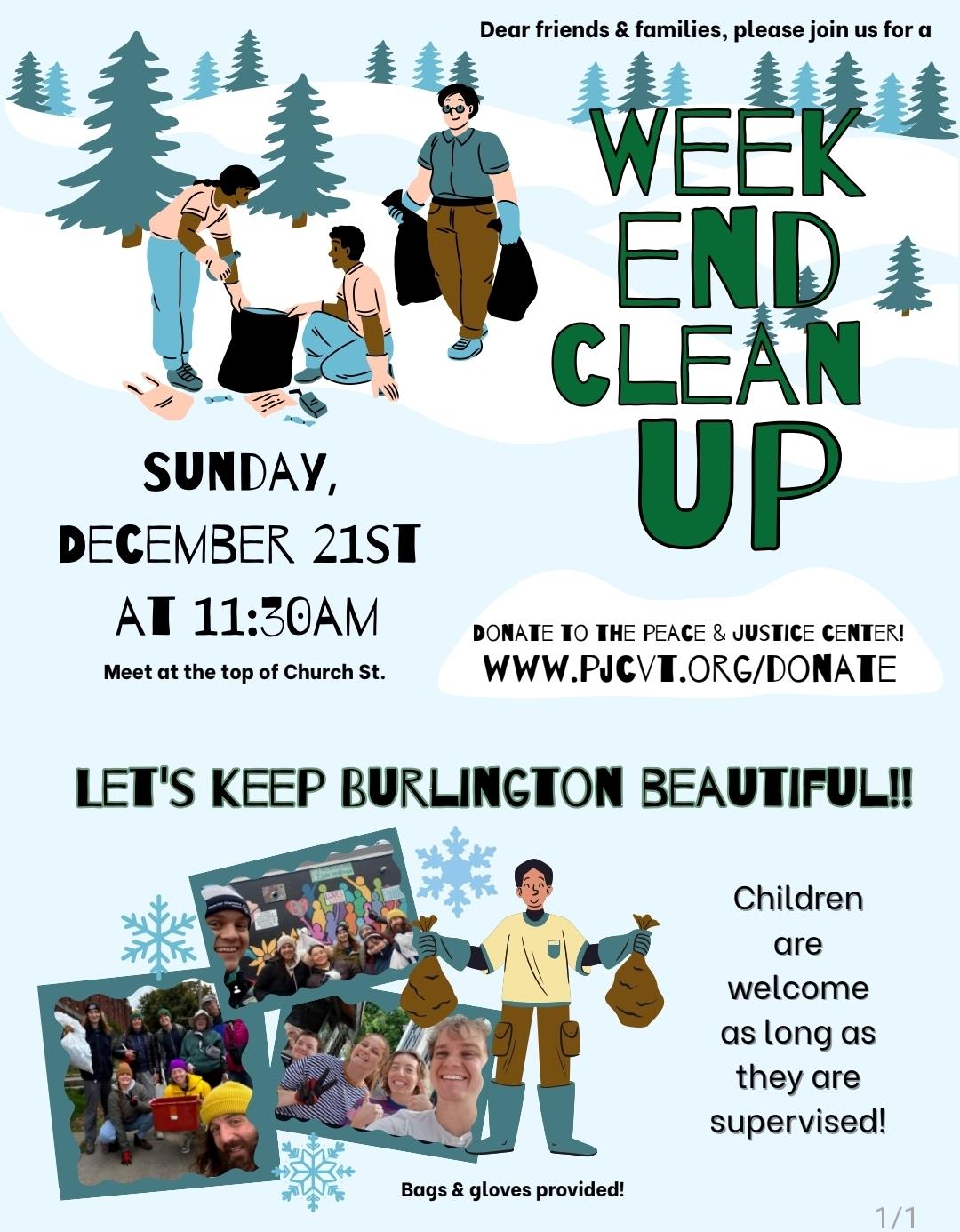 Come help us clean up Burlington, this time on the weekend! We’ll clean up needles, trash, and ensure our community remains as beautiful and welcoming as we all know it to be. Meet at the top of Church St outside Kru Coffee at 11:30am!